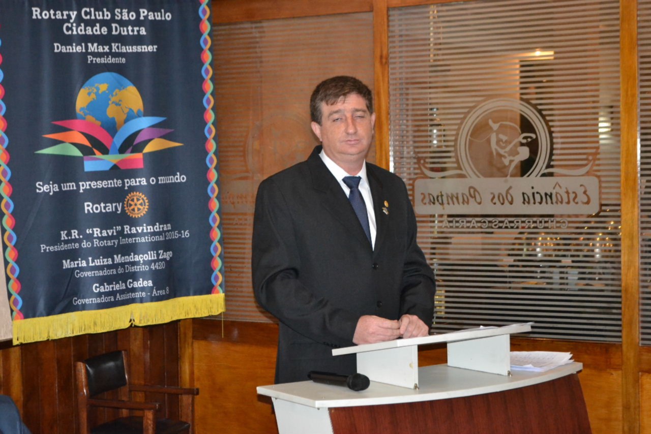 O presidente presente Daniel Max Klaussner recebeu o casal governador do Distrito 4420 Maria Luíza Mendaçolli Zago e Cláudio, durante visita oficial ao clube que apresentou seus projetos e realizou reunião festiva, celebrando o ano rotário 2015-2016.