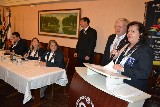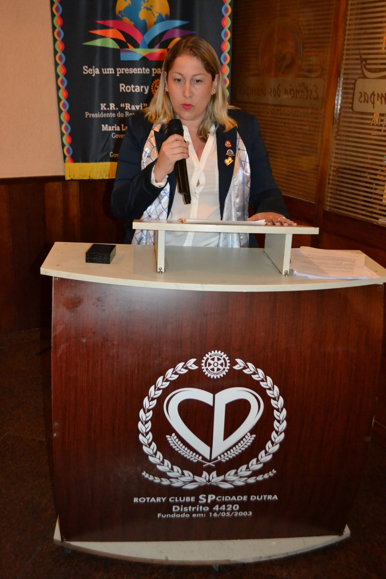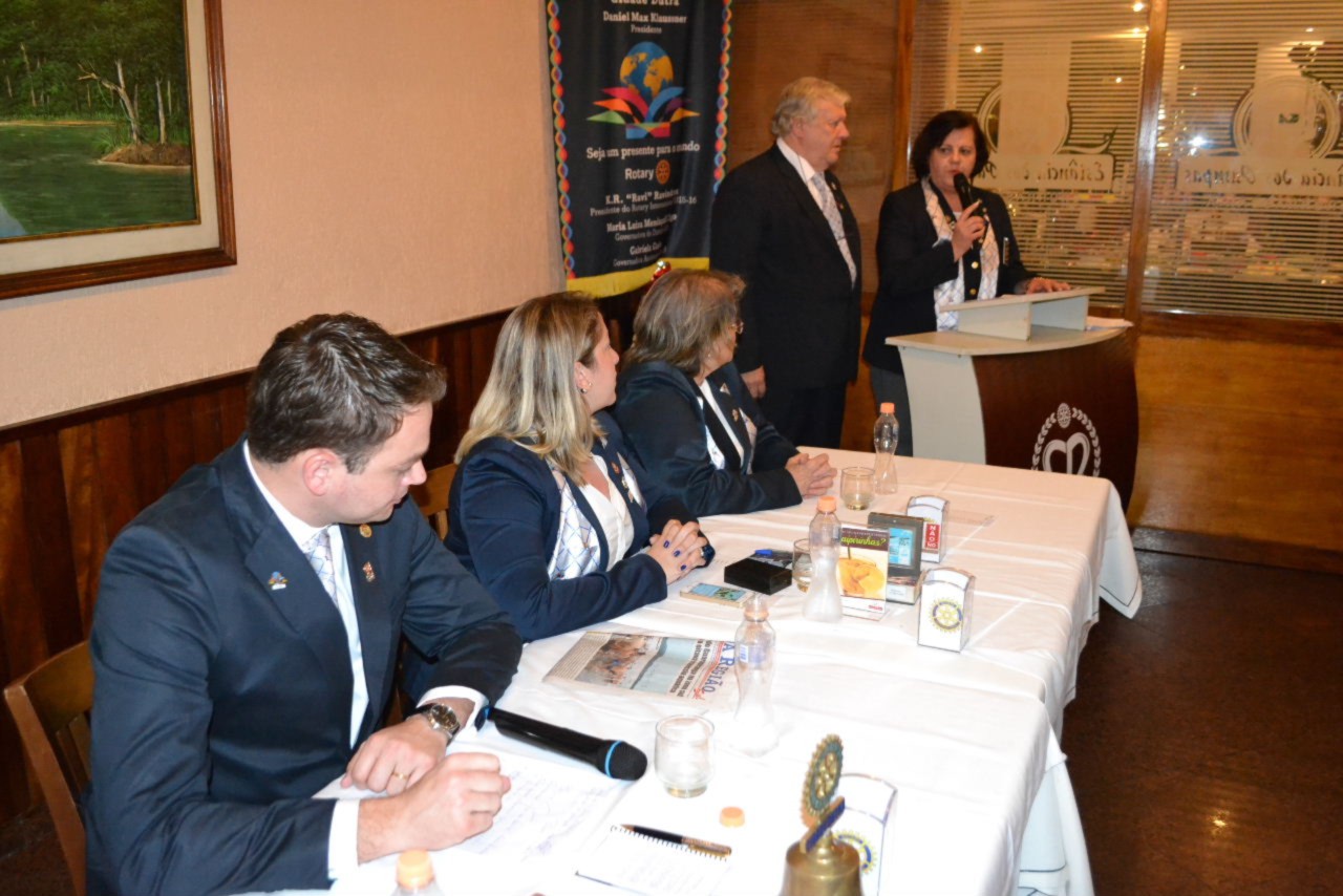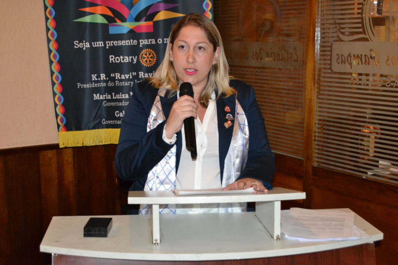 A presidente do Rotaract do clube, Camila Freixa,fez seu pronunciamento e falou da alegria de participar da reunião, junto ao casal governador, ocasião em que citou alguns feitos dos roatarctianos, como doação de cadeira de rodas para um jovem deficiente portador de distrofia muscular, auxílio nas instalações de uma entidade que trabalha com Equoterapia graças ao valor arrecadado durante evento realizado com essa finalidade, campanha contra a Poliomielite, participação significativa no McDia Feliz, entre outras ações que tem sido viabilizadas, graças ao comprometimento, entusiasmo e confiança dos companheiros rotaractianos.