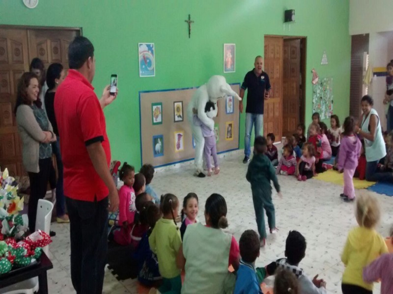 Entrega de ovos de Páscoa para as crianças da creche da Irmã Terezinha, com direito a coelhinho e bricadeiras