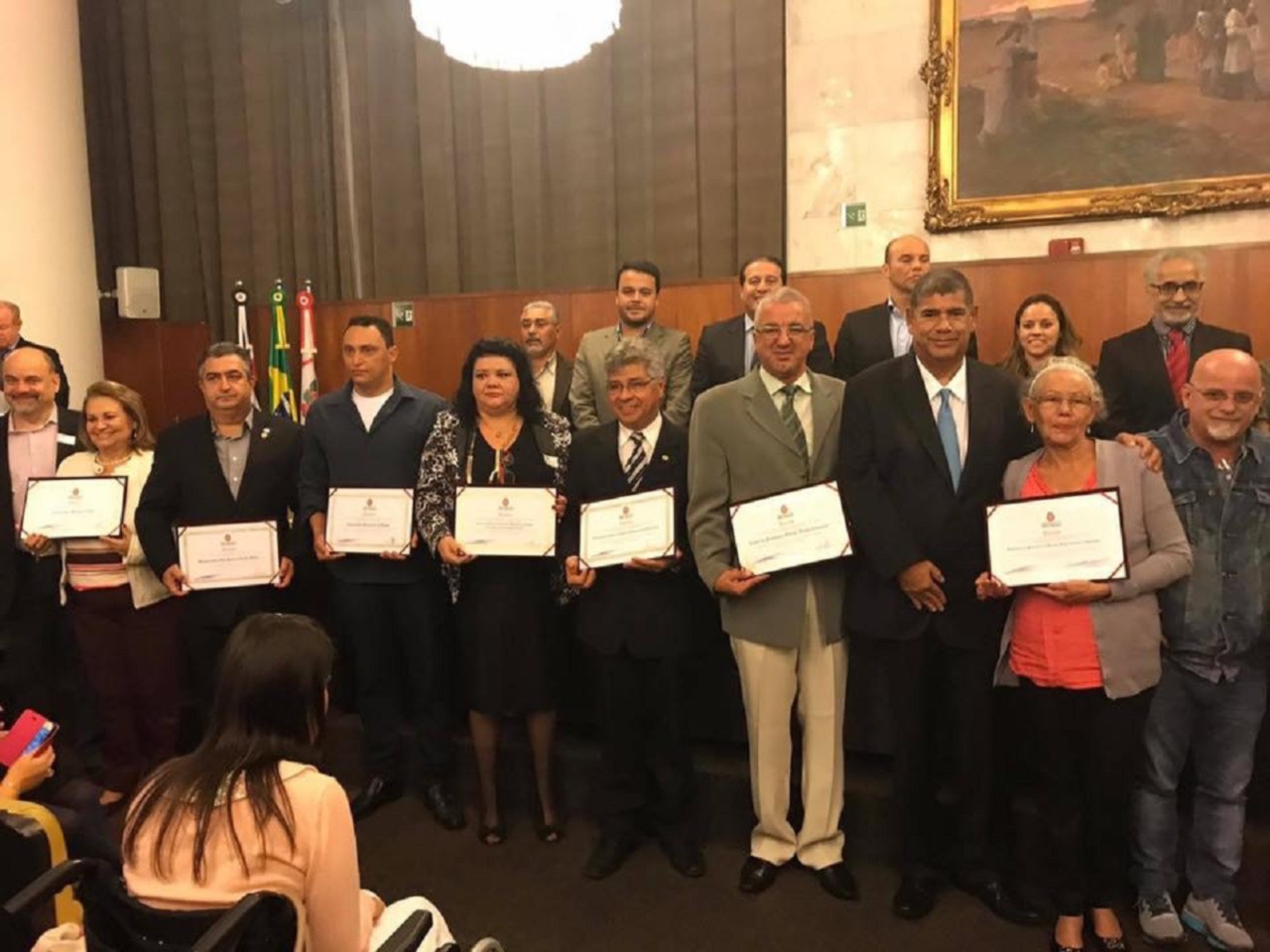 Recebendo no salão nobre da câmara municipal a comenda Chico Xavier pelo serviços prestados a comunidade, indicação do Vereador Rodrigo Goulart